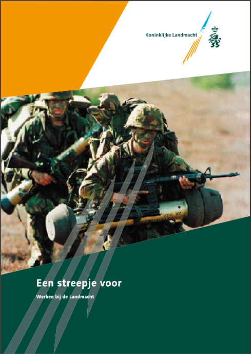 このオランダ国防省のプロジェクトは、トータルアイデンティティ主導の下に進められた。シンボルロゴや宣伝活動のあり方、さらには啓蒙書による軍一人ひとりの意識改革にまで及んだ。啓蒙書は、自らのアイデンティティや存在意義について深く明記されており、オランダ軍の一員であることの自覚を促している。また、トータルアイデンティティが開発したi-Baseを利用して、コミュニケーションツールのデザインマネジメントを一貫して行っている。